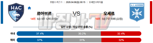 2026-04-06 리그앙 르아브르 AC AJ 오세르 해외축구분석 무료중계 스포츠분석