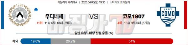 2026-04-06 세리에 A 우디네세 칼초 코모 1907 해외축구분석 무료중계 스포츠분석