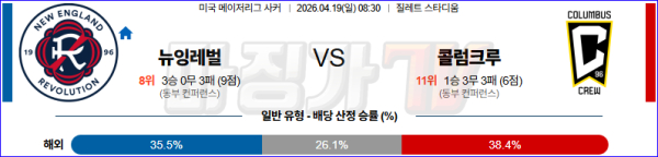 2026-04-19 MLS 뉴잉글랜드 레볼루션 콜럼버스 크루 해외축구분석 무료중계 스포츠분석