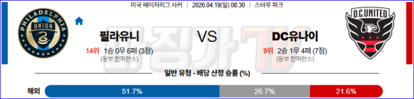2026-04-19 MLS 필라델피아 유니언 DC 유나이티드 해외축구분석 무료중계 스포츠분석