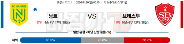 2026-04-20 리그앙 FC 낭트 스타드 브레스트 29 해외축구분석 무료중계 스포츠분석