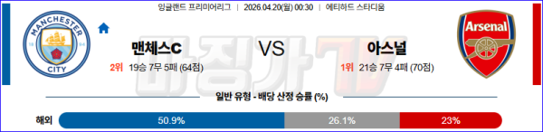 2026-04-20 프리미어리그 맨체스터 시티 아스널 해외축구분석 무료중계 스포츠분석