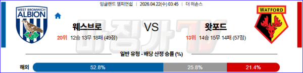 2026-04-22 잉글랜드 챔피언쉽 웨스트 브로미치 앨비언 왓포드 해외축구분석 무료중계 스포츠분석