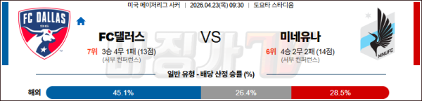 2026-04-23 MLS FC 댈러스 미네소타 유나이티드 FC 해외축구분석 무료중계 스포츠분석