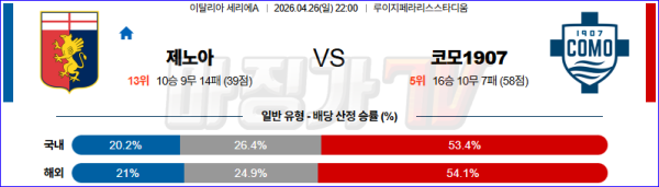 2026-04-26 세리에 A 제노아 CFC 코모 1907 해외축구분석 무료중계 스포츠분석