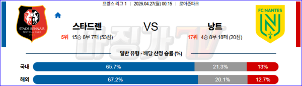 2026-04-27 리그앙 스타드 렌 FC FC 낭트 해외축구분석 무료중계 스포츠분석