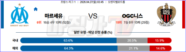 2026-04-27 리그앙 올림피크 마르세유 OGC 니스 해외축구분석 무료중계 스포츠분석