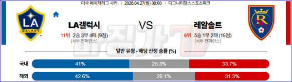 2026-04-27 MLS LA 갤럭시 리얼 솔트레이크 해외축구분석 무료중계 스포츠분석