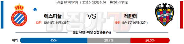 2026-04-28 라리가 RCD 에스파뇰 레반테 해외축구분석 무료중계 스포츠분석