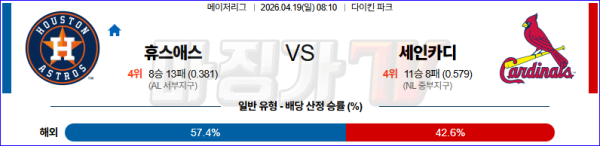 2026-04-19 MLB 휴스턴 세인트루이스 MLB분석 무료중계 스포츠분석