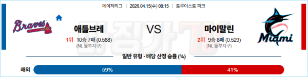 2026-04-15 MLB 애틀랜타 마이애미 MLB분석 무료중계 스포츠분석