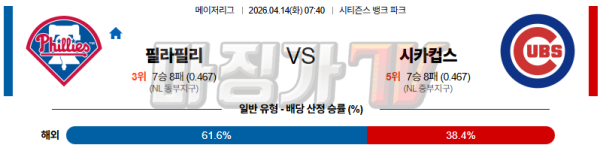 2026-04-14 MLB 필라델피아 시카고C MLB분석 무료중계 스포츠분석