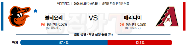 2026-04-15 MLB 볼티모어 애리조나 MLB분석 무료중계 스포츠분석