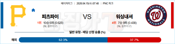 2026-04-15 MLB 피츠버그 워싱턴 MLB분석 무료중계 스포츠분석