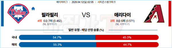2026-04-12 MLB 필라델피아 애리조나 MLB분석 무료중계 스포츠분석