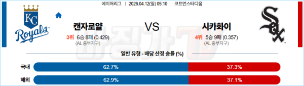 2026-04-12 MLB 캔자스시티 시카고W MLB분석 무료중계 스포츠분석