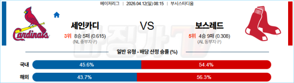 2026-04-12 MLB 세인트루이스 보스턴 MLB분석 무료중계 스포츠분석