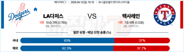2026-04-12 MLB LA다저스 텍사스 MLB분석 무료중계 스포츠분석