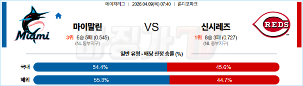 2026-04-09 MLB 마이애미 신시내티 MLB분석 무료중계 스포츠분석