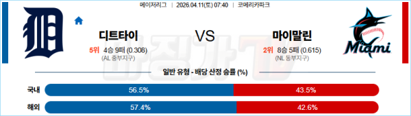 2026-04-11 MLB 디트로이트 마이애미 MLB분석 무료중계 스포츠분석