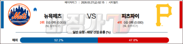 2026-03-27 MLB 뉴욕메츠 피츠버그 MLB분석 무료중계 스포츠분석