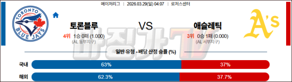2026-03-29 MLB 토론토 애슬레틱스 MLB분석 무료중계 스포츠분석