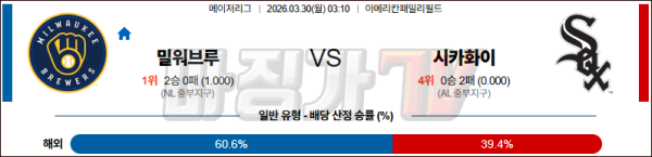 2026-03-30 MLB 밀워키 시카고W MLB분석 무료중계 스포츠분석