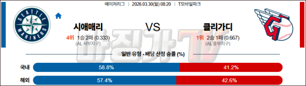 2026-03-30 MLB 시애틀 클리블랜드 MLB분석 무료중계 스포츠분석