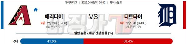 2026-04-02 MLB 애리조나 디트로이트 MLB분석 무료중계 스포츠분석