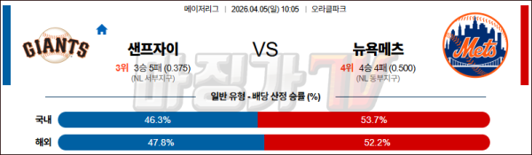 2026-04-05 MLB 샌프란시스코 뉴욕메츠 MLB분석 무료중계 스포츠분석