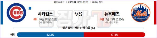 2026-04-19 MLB 시카고C 뉴욕메츠 MLB분석 무료중계 스포츠분석