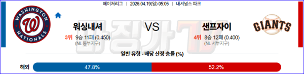 2026-04-19 MLB 워싱턴 샌프란시스코 MLB분석 무료중계 스포츠분석