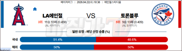 2026-04-22 MLB LA에인절스 토론토 MLB분석 무료중계 스포츠분석