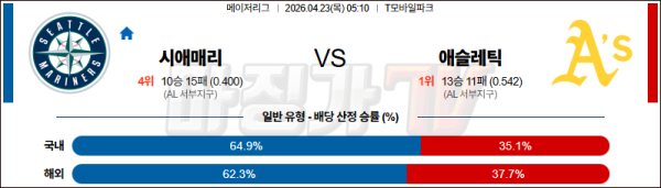 2026-04-23 MLB 시애틀 애슬레틱스 MLB분석 무료중계 스포츠분석