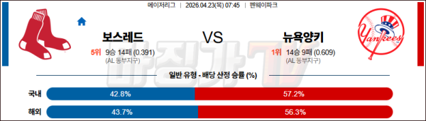 2026-04-23 MLB 보스턴 뉴욕양키스 MLB분석 무료중계 스포츠분석