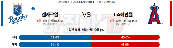 2026-04-25 MLB 캔자스시티 LA에인절스 MLB분석 무료중계 스포츠분석