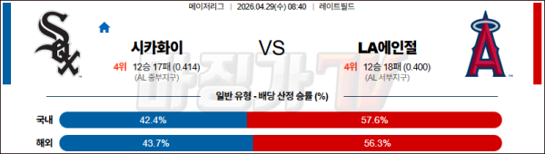 2026-04-29 MLB 시카고W LA에인절스 MLB분석 무료중계 스포츠분석
