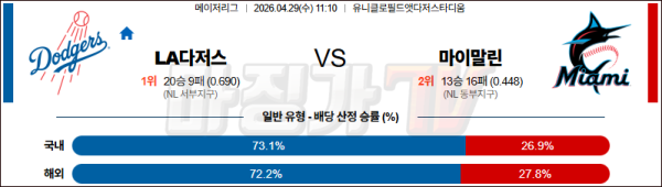 2026-04-29 MLB LA다저스 마이애미 MLB분석 무료중계 스포츠분석