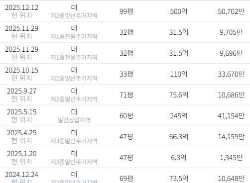 위의 표는 강남구 삼성동의 "대지" 실거래 리스트이다.