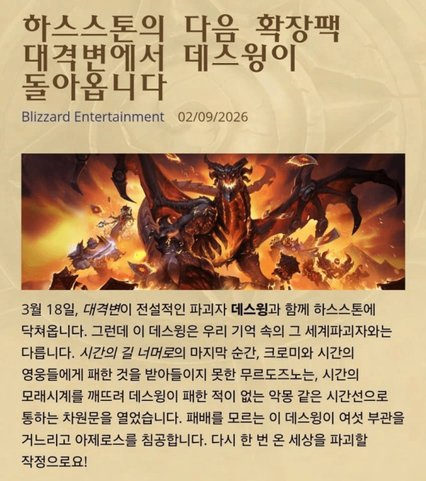 알다시피 하스스톤은 곧 섭종할 예정이였음