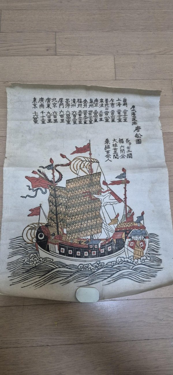 다음은 도해도. 에도시대쯤 제작된걸로 추정되는 청나라 무역선 그림. 배의 대략적인 크기, 특징, 승선인원들이 적혀있음.