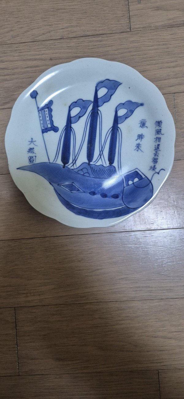 조선통신사선 청화백자. 조선통신사가 타고 온 배를 백자에 그려놓은 유물