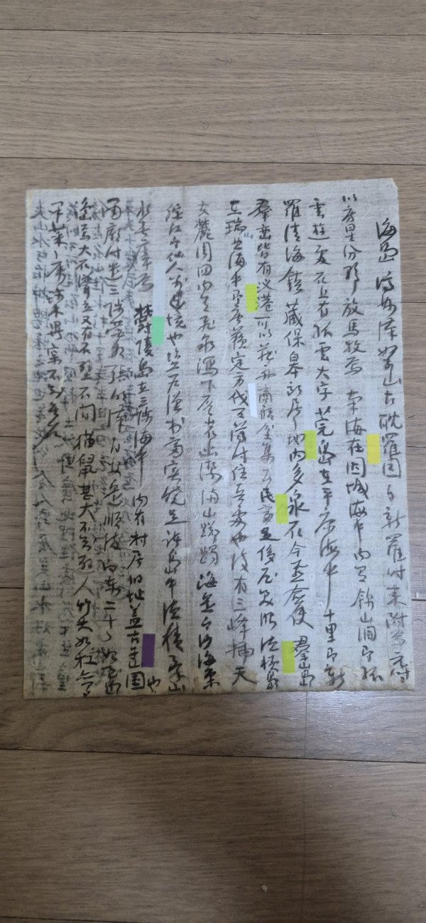 고군산도, 완도, 울릉도가 행선지로 적혀있는 고문서