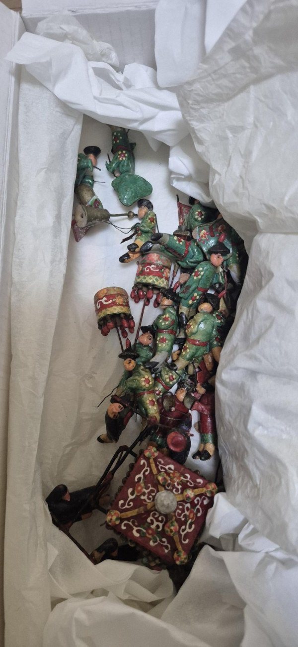 조선통신사 도기인형. 손가락 정도의 크기로 조선통신사 행렬 인원들을 묘사한 38개의 도기 유물.