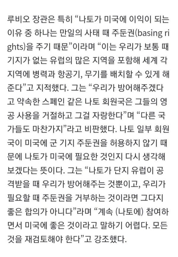 미 국무 “영공 사용 거절 스페인 실망스러워…동맹은 상호이익” 트럼프 “나토 탈퇴, 미국에 이익” 스페인 “불법적이고 무모한 전쟁” 마코 루비오 미국 국무장관이 30일(현지시간) 대이란 전쟁 종료 후 미국과 유럽 간