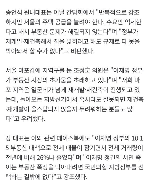 장동혁 “서울에서 ‘반값 전세’ 추진하고 수도권 전역으로 확대