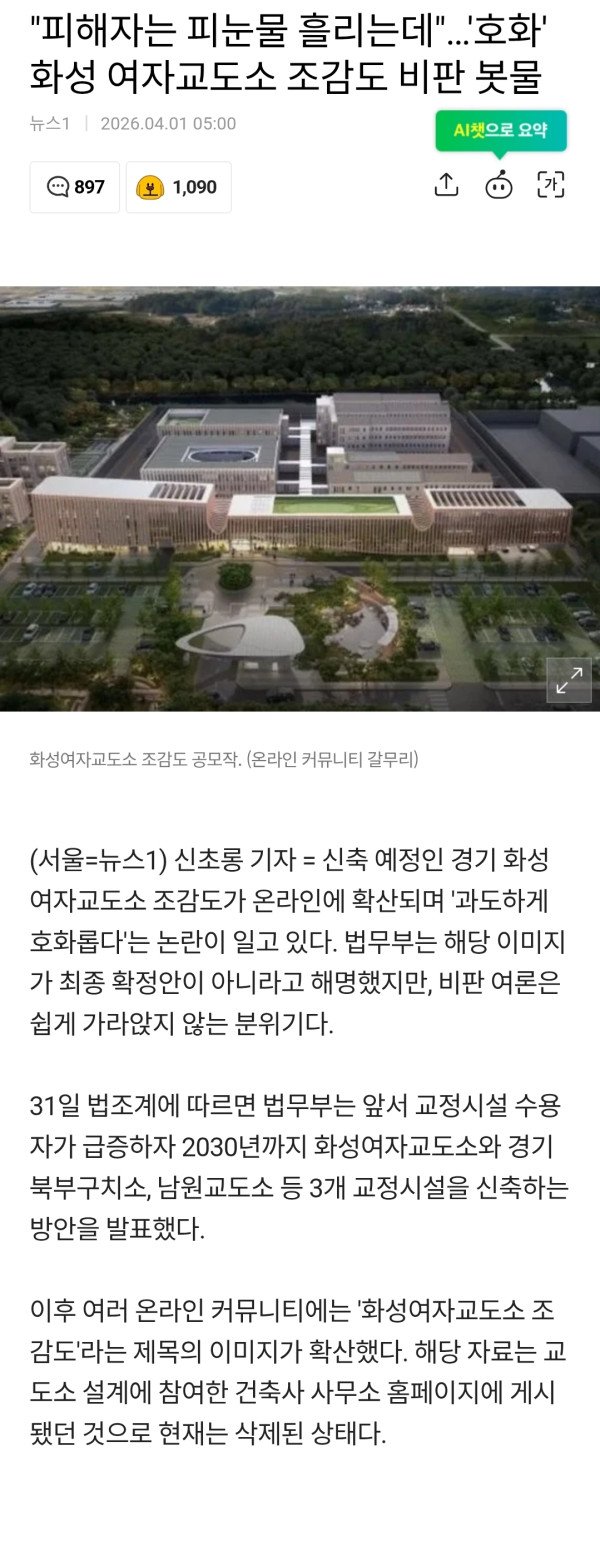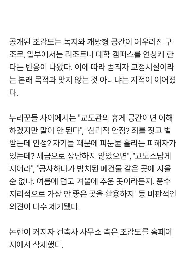 "피해자는 피눈물 흘리는데"…'호화' 여자교도소 조감도 비판 봇물