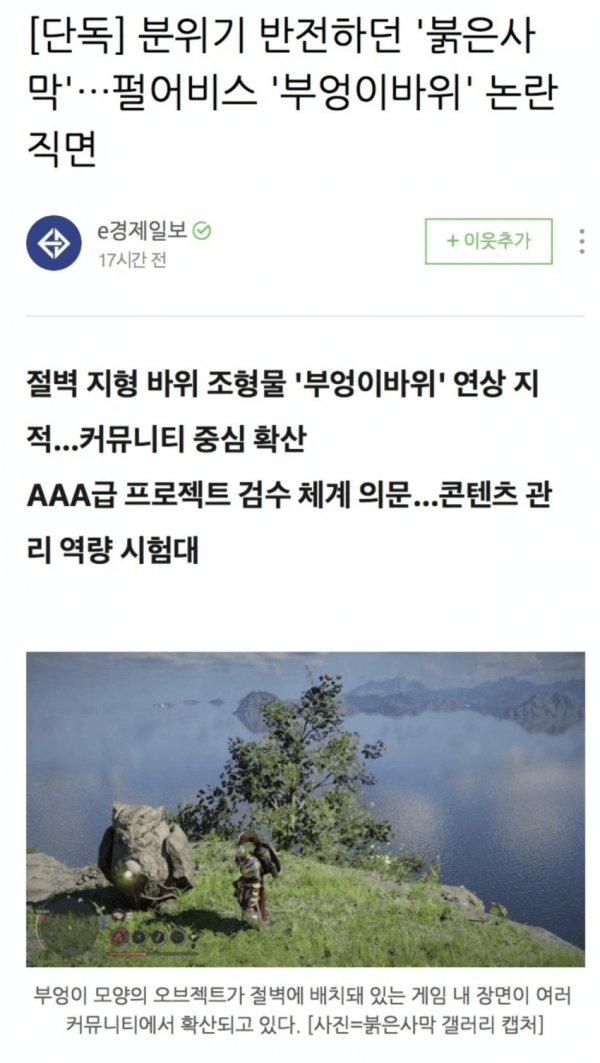 핫게간 붉은사막 부엉이바위 논란은 날조 억까임