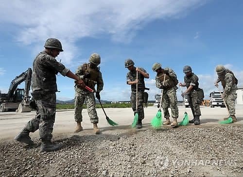 마침 놀러왔다가 걸려든 미해군 시설놈들도 청소를 거드는 모습이다.