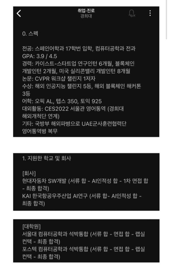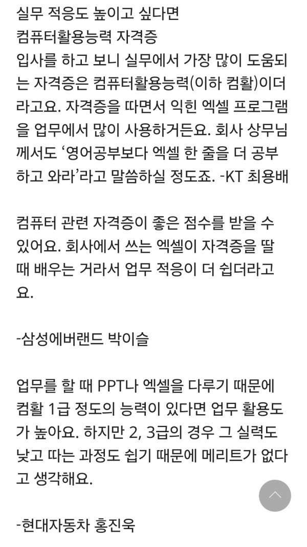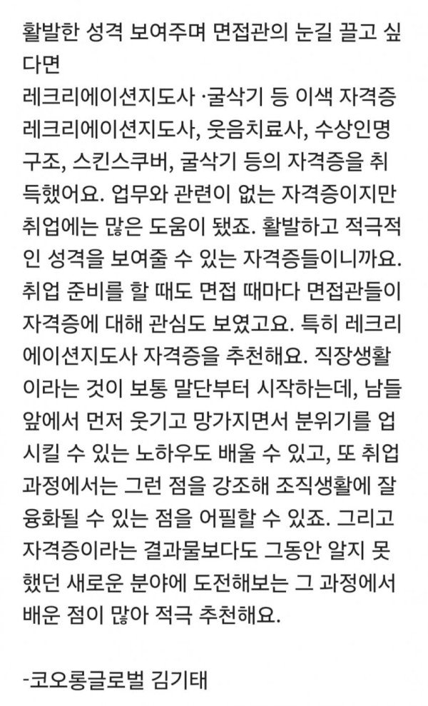 싱글벙글 10년전 대기업 합격자의 스펙자랑